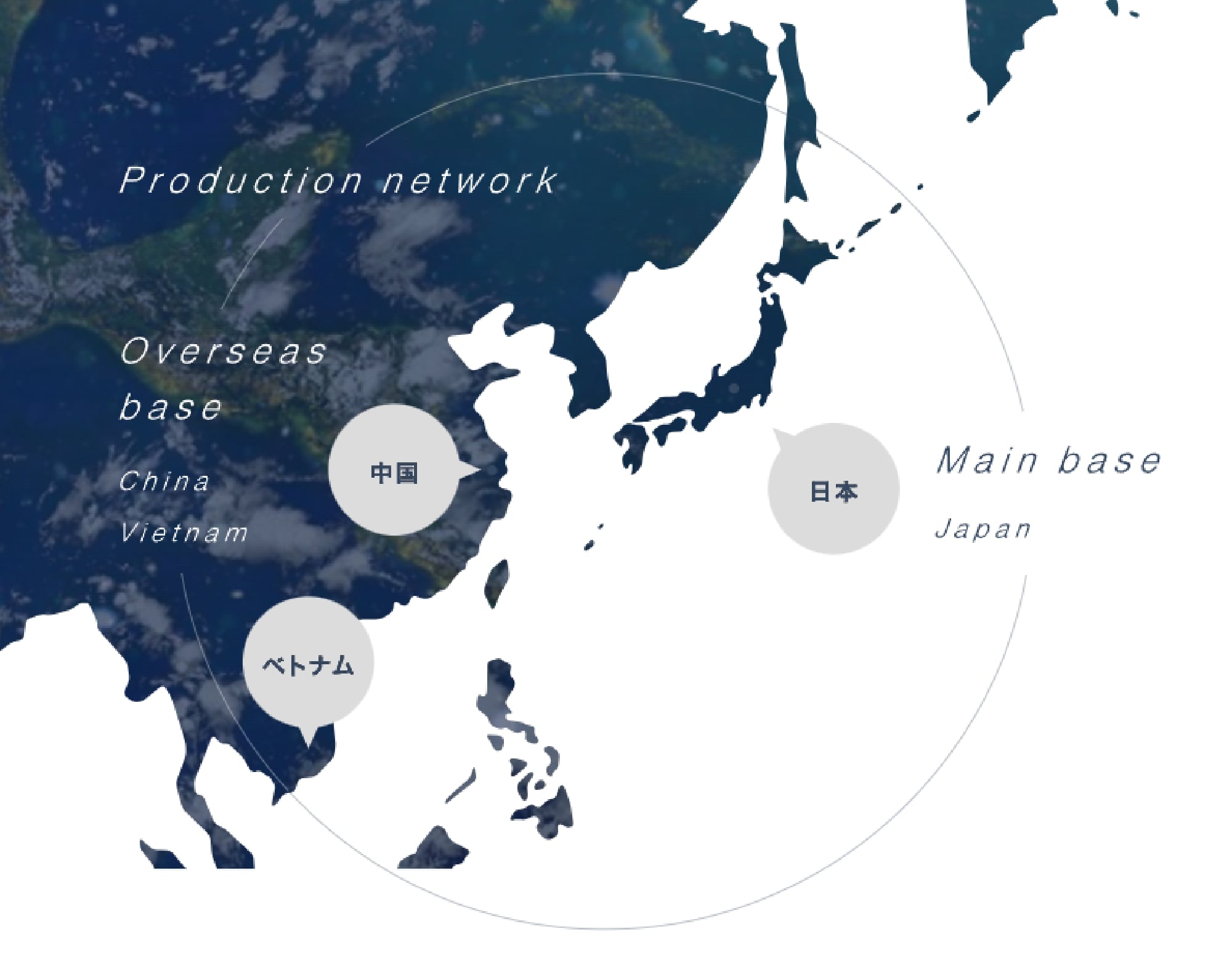 With production bases in Japan, China, and Vietnam, we integrate with people of diverse values and cultures worldwide. Through innovative ideas and proactive action, we establish Yuwa's technology that breaks conventional norms.