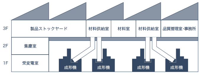 Production System Supporting Global SupplyApproximately 450 molding machines operate across three locations: Japan, China, and Vietnam.
