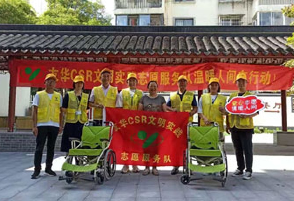 Yuka Precision (Wujiang) Co., Ltd. in China is also actively pursuing CSR activities. We provide vision screenings and blood pressure checks for local residents near our company, volunteer at nursing homes, and donate wheelchairs.