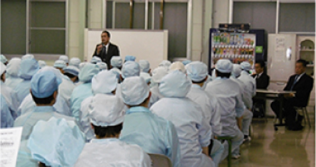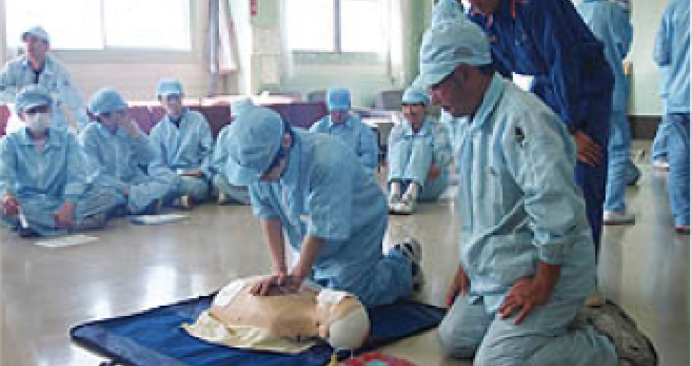 We have installed AEDs in the factory to prepare for emergencies. We conduct training sessions to learn life-saving measures such as operating the AED and performing CPR.