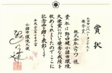 2010Received the Excellence Award in the “Eco Company Contest” from Komoro City
