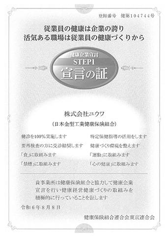 At Yuwa, we believe that human resource development is the driving force behind manufacturing. We will cultivate employees both domestically and internationally who possess integrity and pride, and establish technologies and products that break through conventional wisdom.